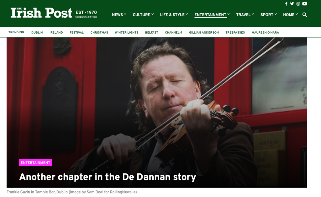 Frankie’s interview on RTE Today programme on May 16 starts with a clip of The Provenance and includes Frankie’s comments about how it all started, the influence of De Dannan, and what he’s up to now. Recording here: